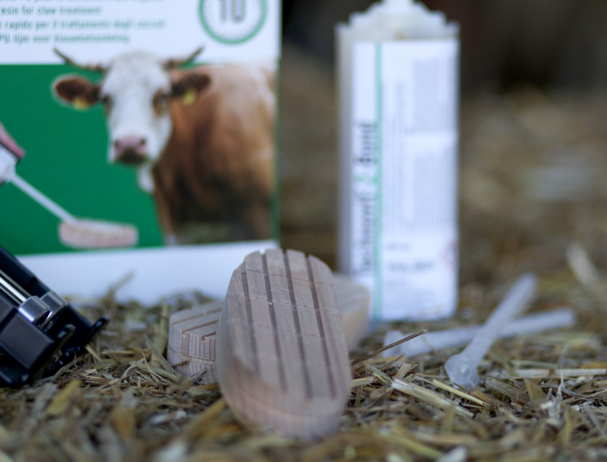 Technobase Kleber und Holzklötze: Die Holzklötze dienen als temporäre Stütze und entlasten die verletzte Klaue. Der spezielle Kleber sorgt für eine sichere und stabile Anbringung.