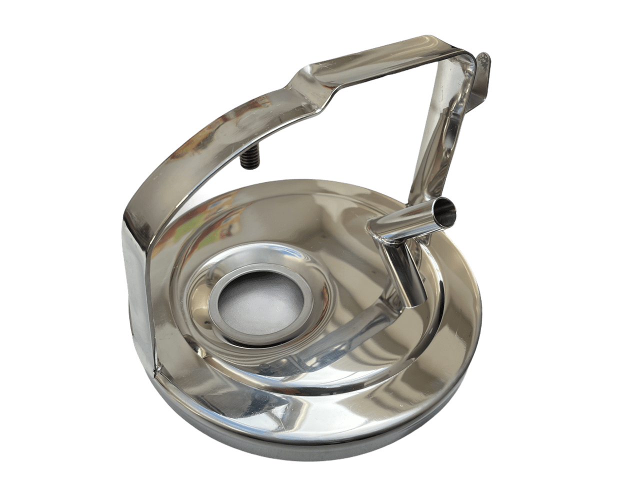 Produktinformationen "Edelstahl Melkeimerdeckel passend DeLaval, Bügelhöhe 117 mm, Ø 19mm Stutzen"