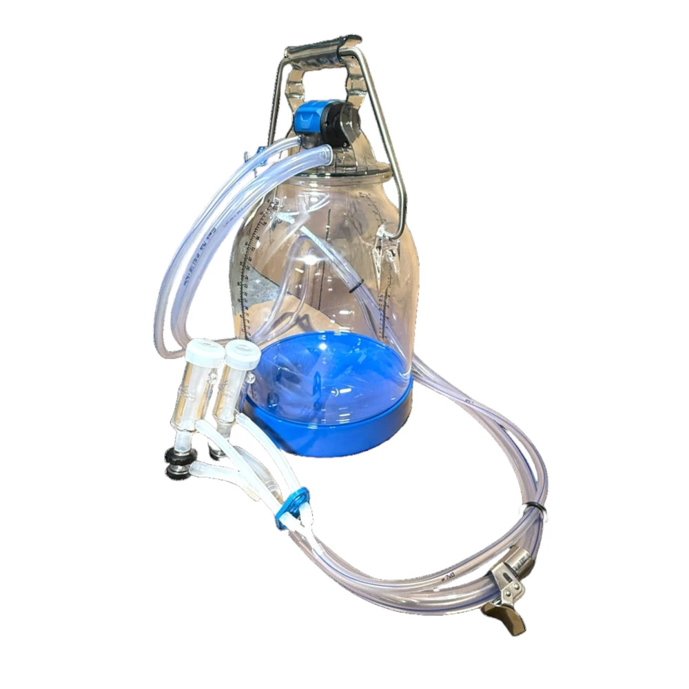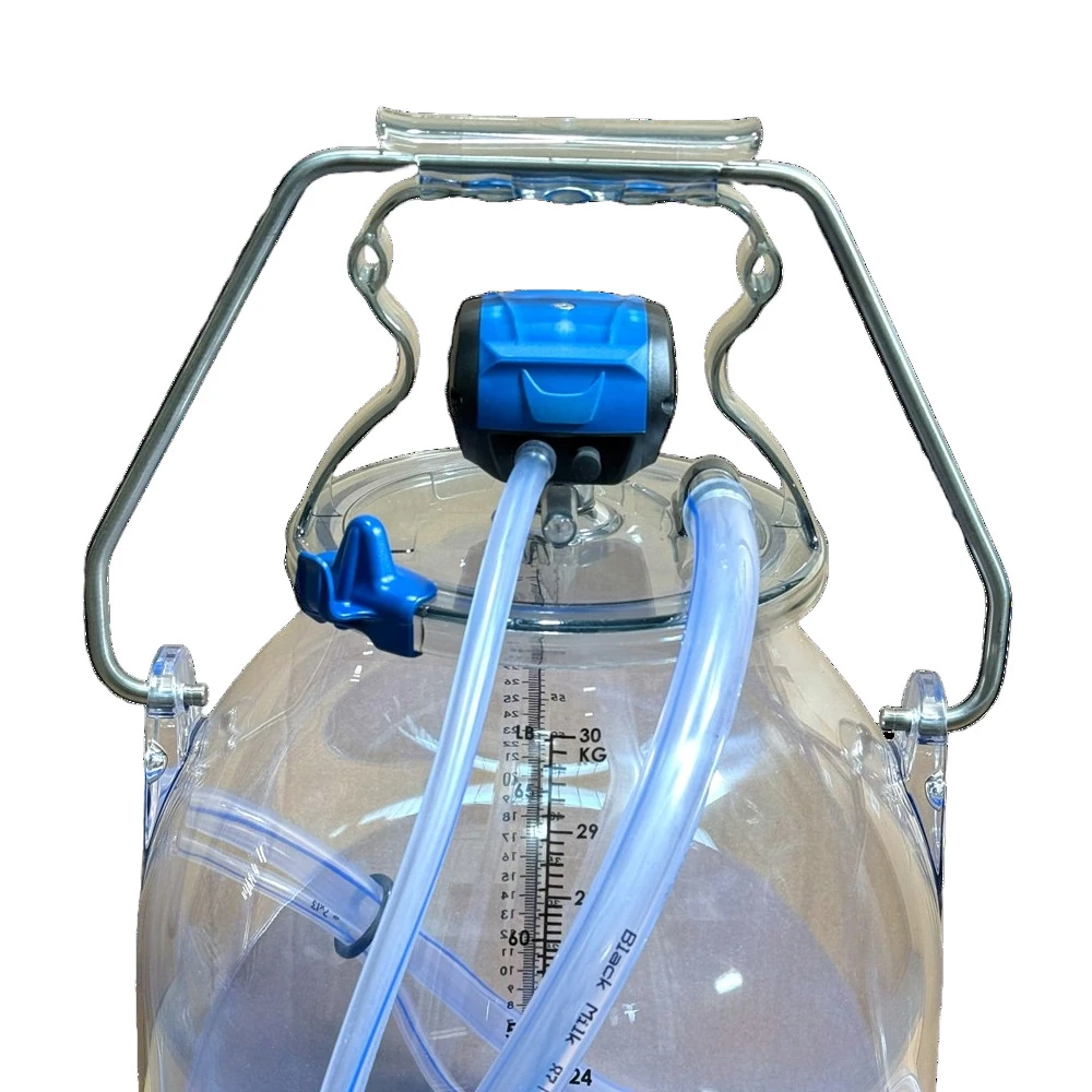 Komplette Eimermelkanlage für Ziegen, ausgestattet mit einem transparenten 30-Liter-Kunststoffeimer inklusive Messskala. Das System nutzt den innovativen Libero-Deckel und einen spezialisierten Pulsator mit einer 60:40 Taktung für optimales Ziegenmelken. Das Ziegenmelkzeug Standard verfügt über Silikon-Zitzengummis in Kunststoffbecherhülsen. Alle verwendeten Schläuche sind temperaturbeständig und lebensmittelecht geprüft.